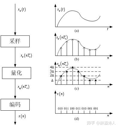 量化后,信号不仅在时间上不再连续,在幅度上也不连续了。经过量化处理之后,离散时间信号变成了数字信号。