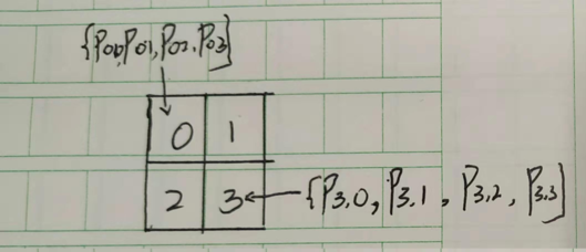 如下图所示,对于一张图片一共有{0,1,2,3}4类,对于第0类,其分类情况有4种分别为{$p_{00},p_{01},p_{02},p_{03}$},同理对于第1,2,3类均有4种情况,这也就对应了分母中的两次求和。
