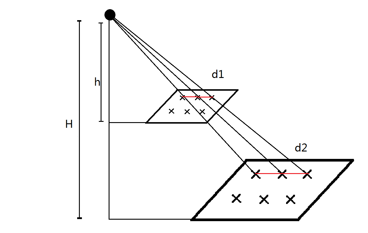 由于物体有高度,因此还需要进行一个投影变换,其实也还是相似变换