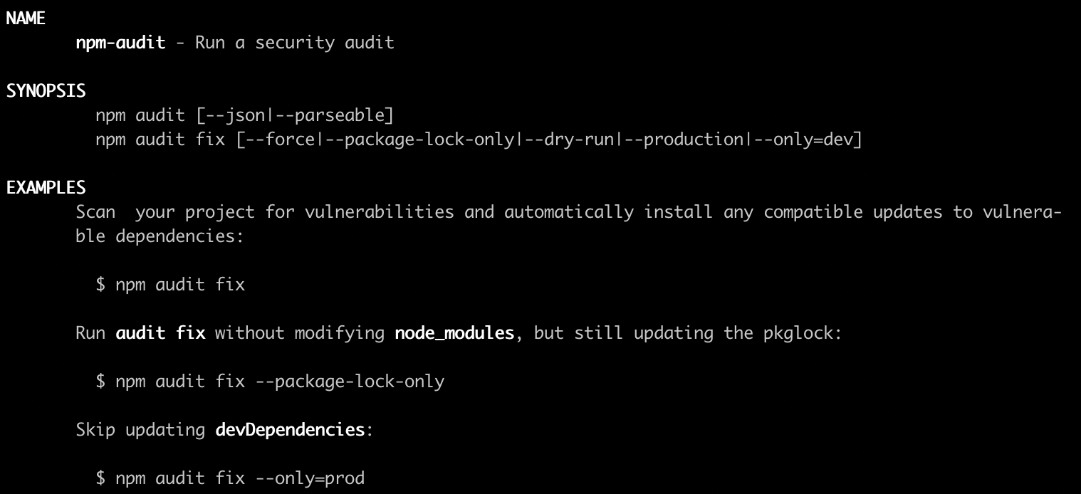 在命令行输入 man npm-audit :