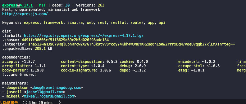另外,你还可以去 https://www.npmjs.com/ 查询更多更详细的包信息。