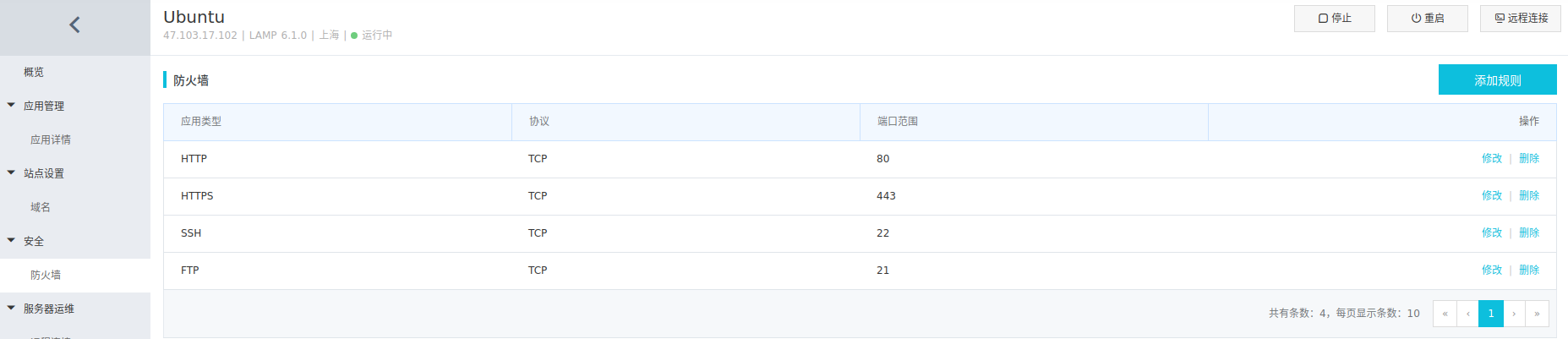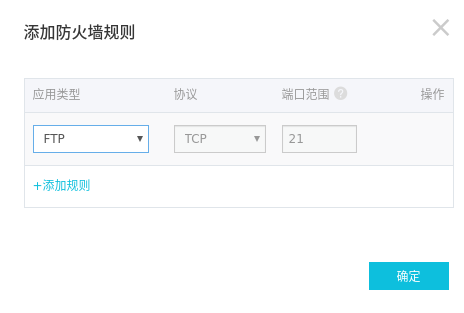 然后将FTP端口加入到规则中。这样我们就能使用FTP连接到服务器了。