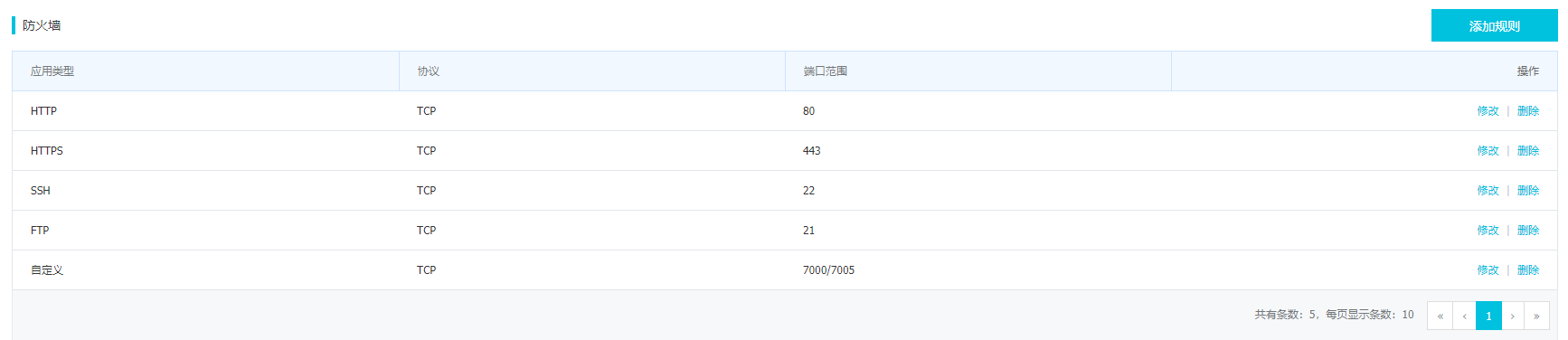 配置完上述内容,打开阿里云服务器的防火墙设置,将70000~70005端口开放,如下所示。除了7000端口,7002端口和7005端口,其余端口的功能在下面将会介绍。