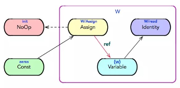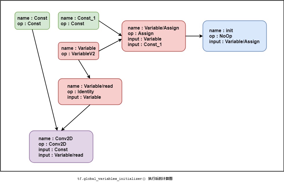 在执行完tf.global_variables_initializer()后,图中结点为: