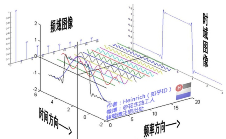 但不同的是,傅里叶变换出来的频谱不仅仅是可见光这样频率范围有限的叠加,而是频率从0到无穷所有频率的组合。