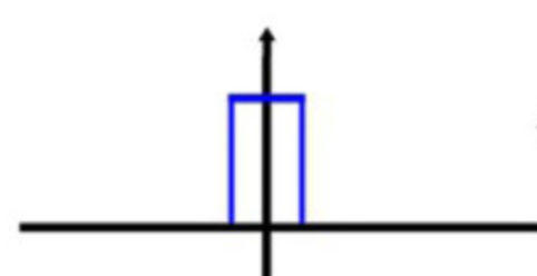 它的横坐标是频率,幅值为1,这是典型的『低通滤波器』,如果有信号跟它做卷积,那这个信号只会留下在0附近的低频信号,其他高频分量都被过滤掉了。