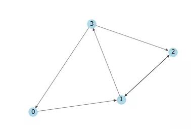 使用 numpy 编写的上述有向图的邻接矩阵表征如下: