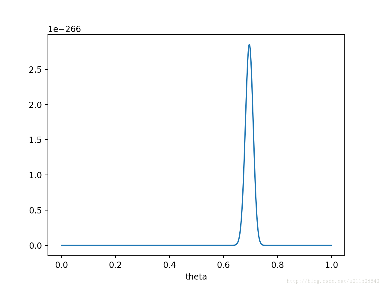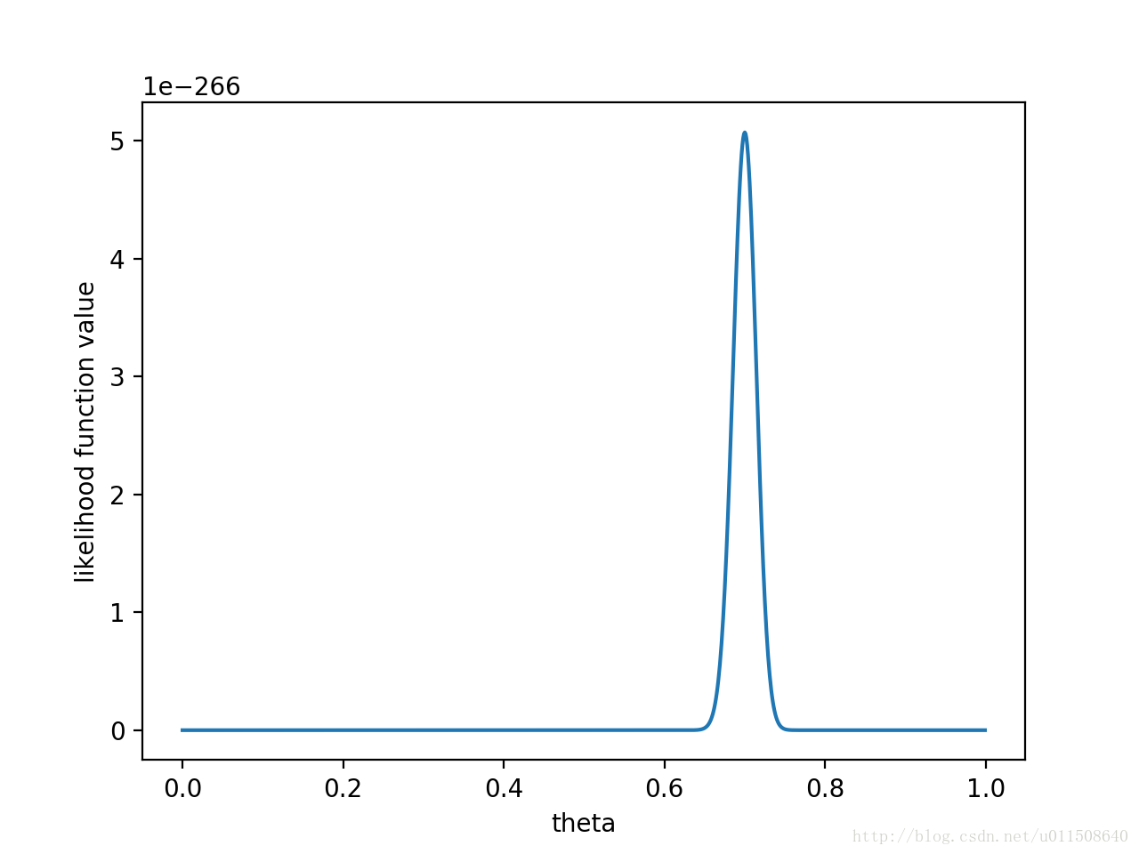 如果做了1000次实验,其中700次都是正面向上,这时似然函数为: