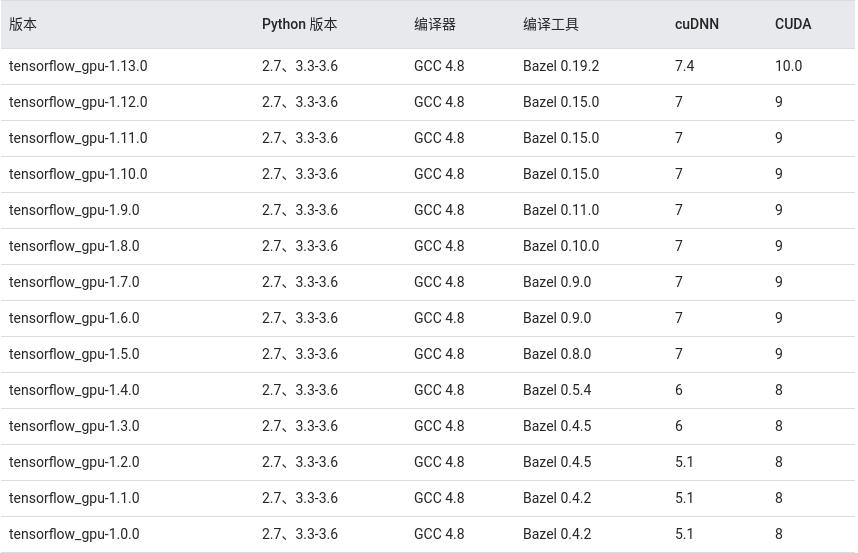 tensorflow CUDA cudnn 版本对应关系