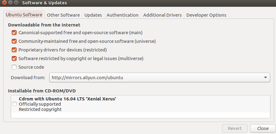 所谓源,可以理解为Ubuntu从何处下载软件。默认的源是server for china,个人测试这是从美国的服务器下载软件进行安装的,为了加快下载安装软件的速度,我们通常把软件源更改为国内的服务器。