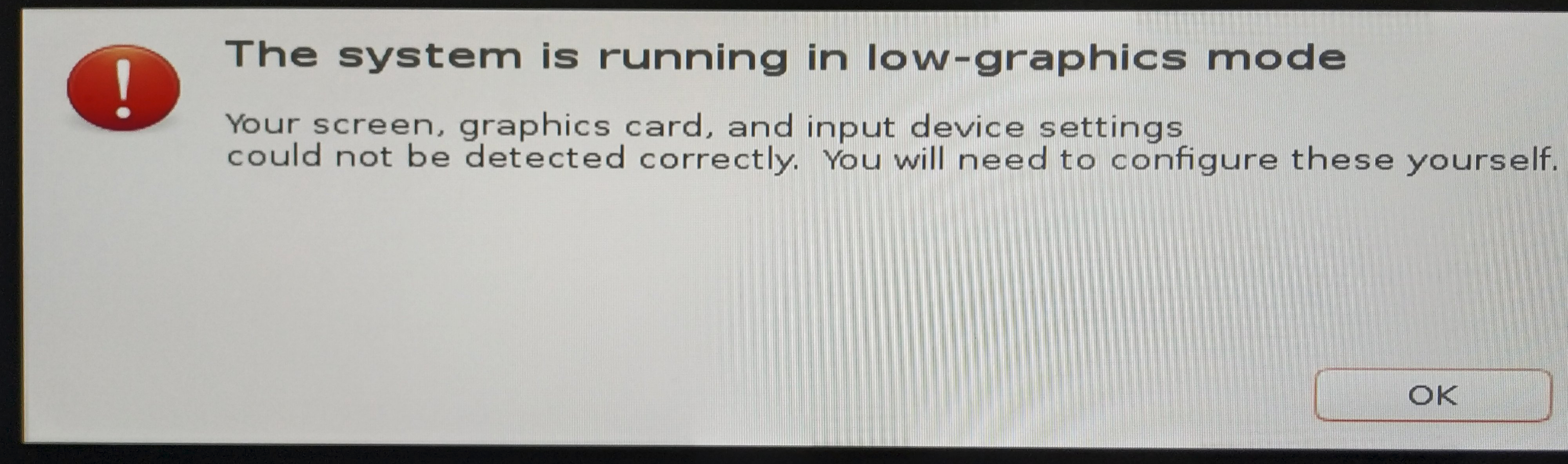 the system is running in low-graphics mode