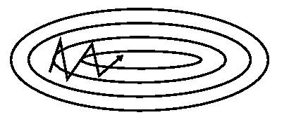 从迭代的次数上来看,SGD迭代的次数较多,在解空间的搜索过程看起来很盲目。其迭代的收敛曲线示意图可以表示如下: