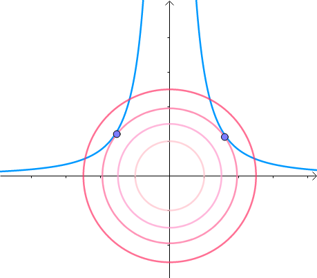 这里介绍一种解题思路。首先,与原点距离为$a$的点全部在半径为$a$的圆上: