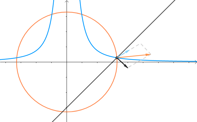 综合可知,在相切点,圆的梯度向量和曲线的梯度向量平行。